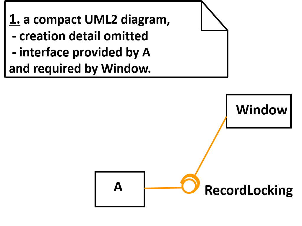 In contrast, I occasionally showed «create» explicitly, back in the early days of UML, to explain why there were both a «call» Dependency to an «interface» (operations in the interface are called, «call» being a third stereotype of «use» ) and along with that one, another Dependency ( «create» ) as a ”shortcut” actually bypassing my nice «interface», see diagram 2.