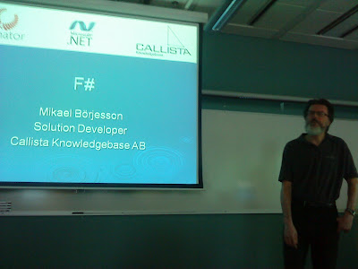 I fredags var Mikael Börjesson från Callista i Stockholm och höll en föreläsning om Microsofts funktionella språk; F#.